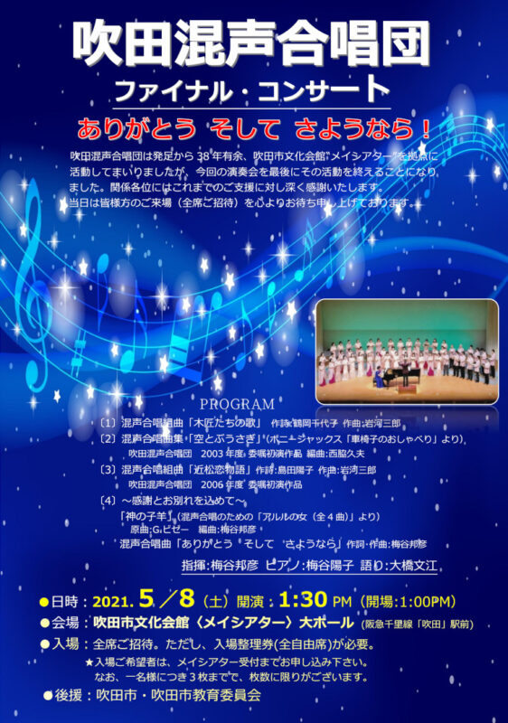 2021年6月27日、「吹田混声合唱団」は解散式をもって、